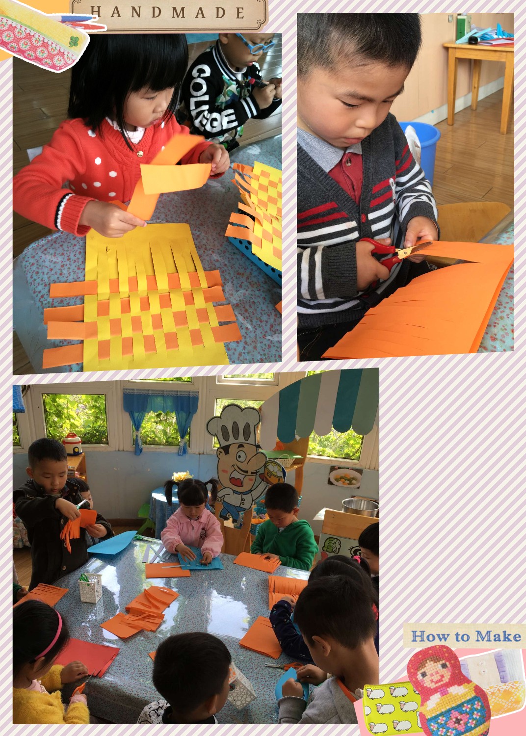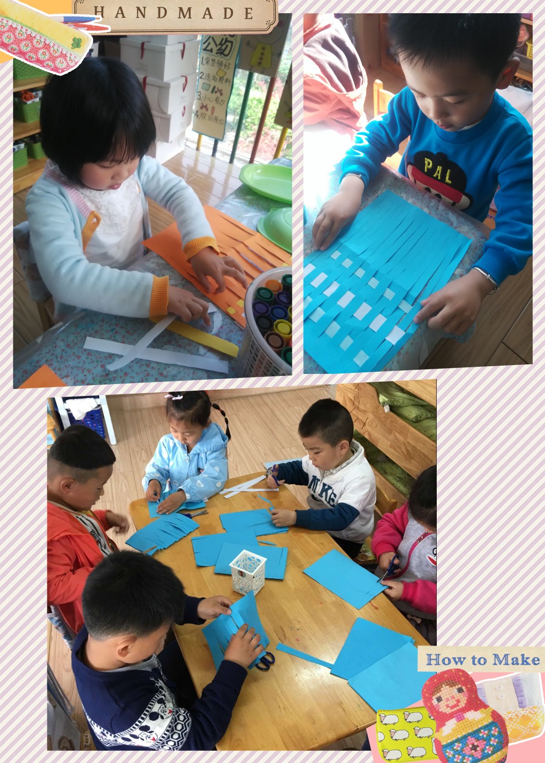 看,我们穿得很有规律呢,一条淡蓝一条白,一条淡蓝一条白。