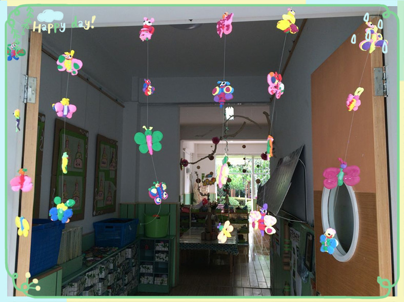 我们将做好的蝴蝶装饰教室,这样每天我们一进教室就可以看见自己做的小蝴蝶!