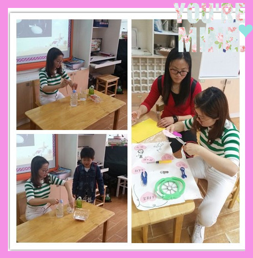 首先凡凡妈拿出一个装满水的容器,将鸡蛋轻轻放入水中,鸡蛋沉了下去?咦?说好的沉下去呢?紧接着凡凡妈又往水里撒了一些盐,鸡蛋真的慢慢沉下去了!真的太神奇啦!孩子们拍手欢呼!凡凡妈告诉我们,向水里加盐是为了使水的密度变大从而使浮力变大,就这样鸡蛋慢慢浮起来了!