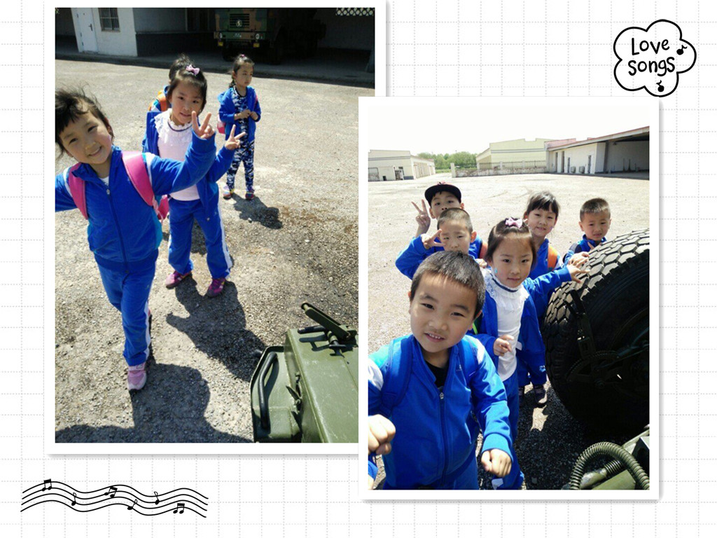 我也要当解放军 之参观军营 解放军——这个响亮的名字令孩子们崇拜、好奇:解放军为什么都很勇敢?坏人为什么都怕解放军?他们是如何练就一身武艺的?解放军有哪些先进的武器?他们平时是如何生活的呢?为了解开这一个个令人激动的谜题,我们在《小小兵》主题中开展了参观军营的活动,孩子们来到了方山炮兵部队,零距离接触到了令人敬佩的解放军叔叔们。 在军营里,我们看到了许多先进的武器,更看到了解放军叔叔们平时生活、训练的样子——一丝不苟、认真专注。小朋友们在活动中收获颇多,回来后都能够向解放军叔叔学习,自己的物品整齐摆放呢!