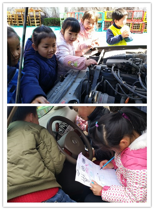 我与汽车零距离 汽车来我们幼儿园啦!最近,小伙伴们都在研究汽车,讨论汽车的发展史、汽车的外形结构、未来汽车会是什么样。今天,老师带着我们走进汽车,看,我们正在仔细的观察着,记录着我们的发现~ |