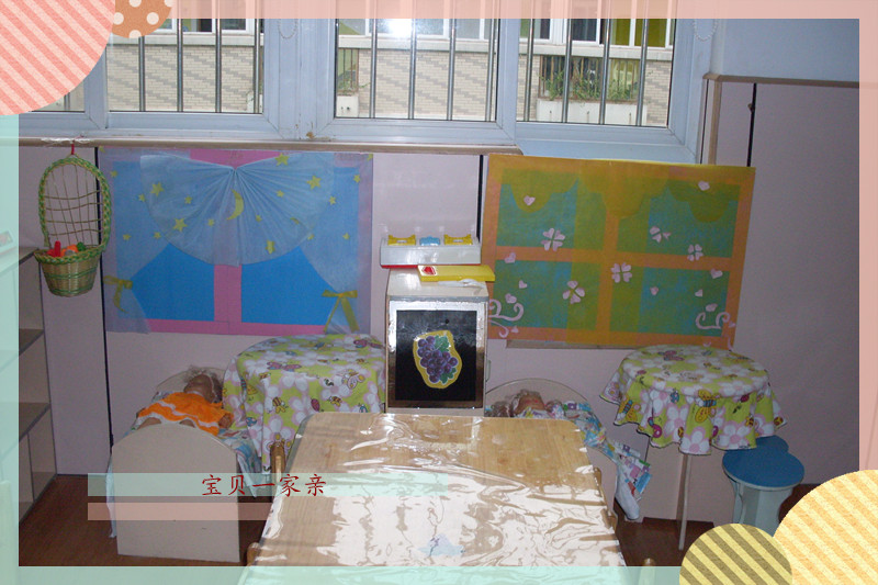我们班的区角游戏可丰富了,我们可喜欢玩了!我们班的区角游戏有:宝贝一家亲、贝贝书吧、玩具吧、巧手吧、智慧吧和薯条店,里面有很多好玩的游戏,你想参加我们的区角游戏吗?要不,我先来带你们参观一下吧!