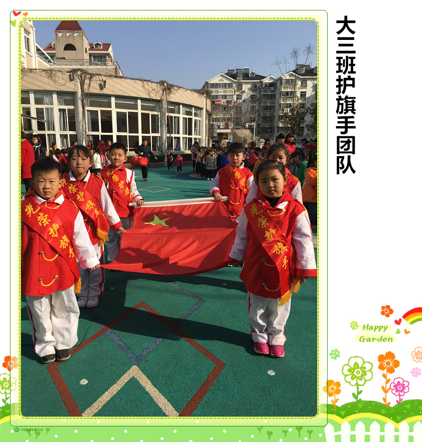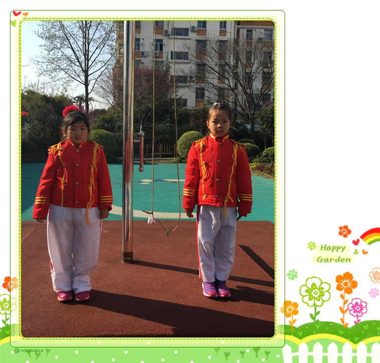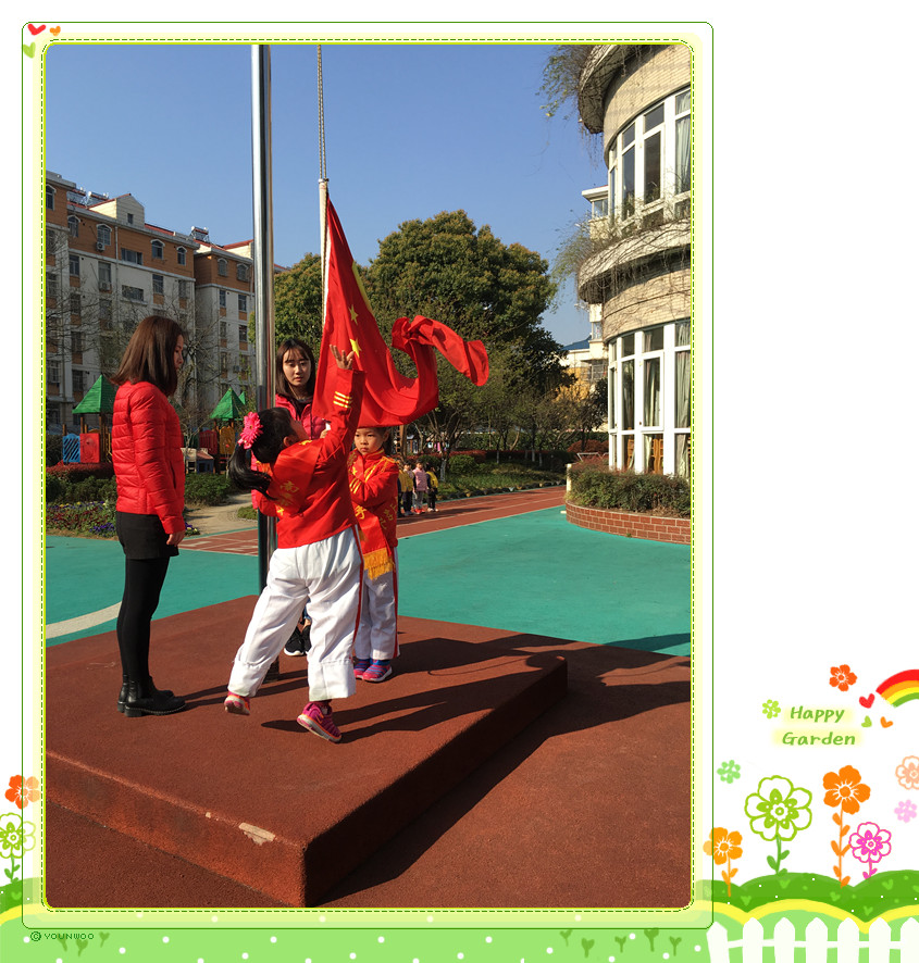 今天是2017年3月27日,星期一。到处都是春光明媚的景象。小草带着泥土的芳香钻了出来,一丛丛,一簇簇,小朋友们也都脱掉了笨重的冬衣,换上了既轻便又鲜艳的春装。大三班的小小升旗手沈卓然和徐诗涵也早早地来到了国旗台,为升旗仪式做准备。