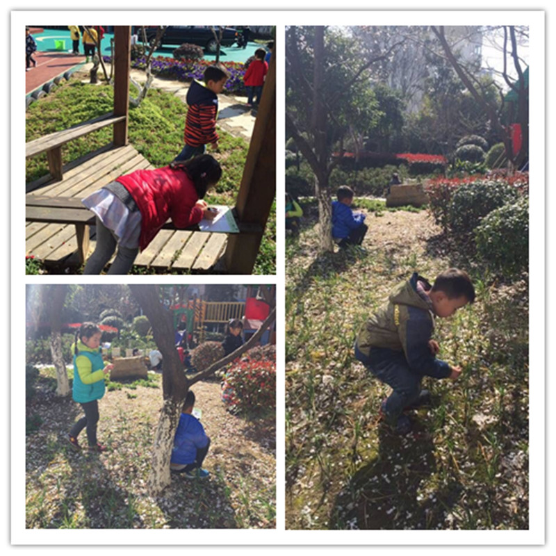 春天来了,我们走出教室,走出幼儿园去感受春风的抚佛,去领略阳光的暖意,去寻找春的足迹。菜地上,花丛里,小树旁,我们在植物里寻找春天,并引导小朋友们把自己找到的春天用画笔画下来。让小朋友学会观察、发现春天到来时,花草、树木以及动物的变化,用美术方法表现对春天的认识,并感受大自然的美景。