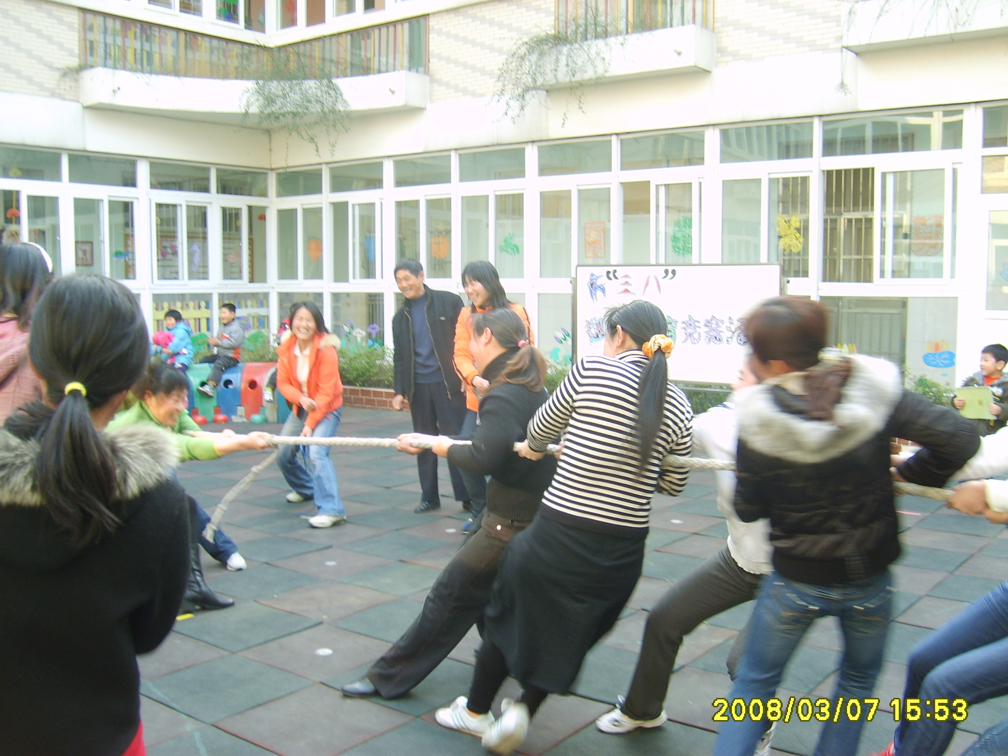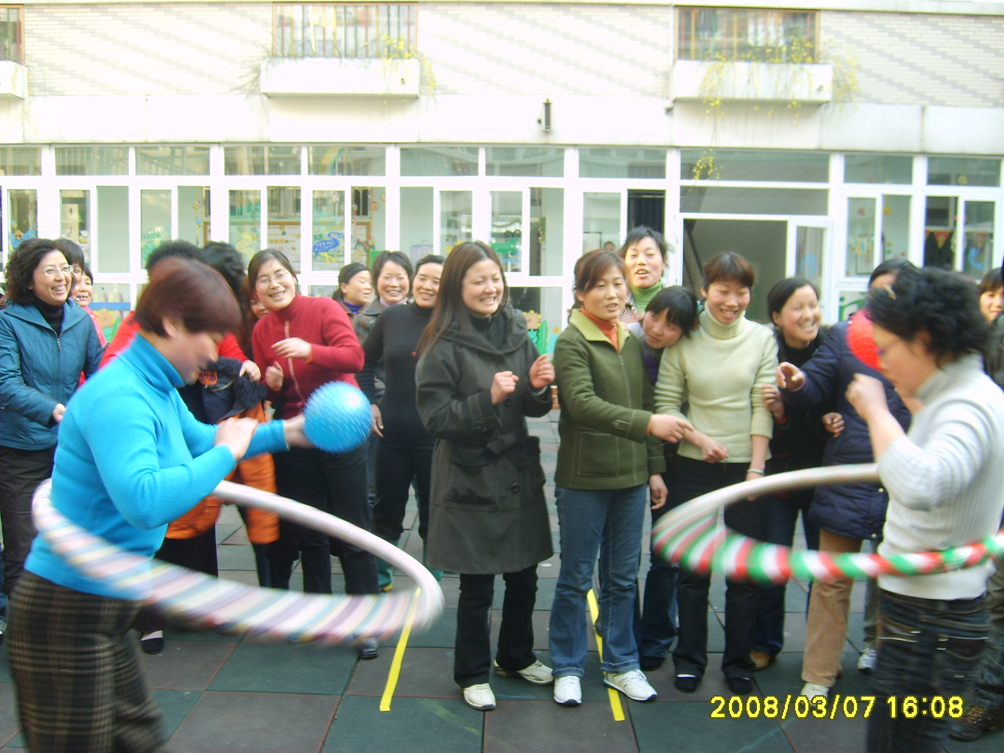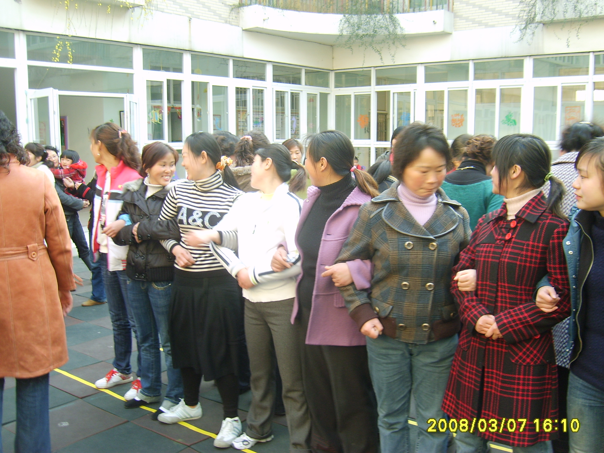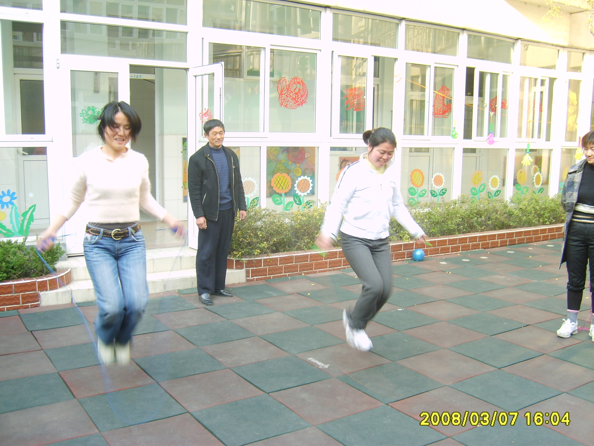 2008年是奥运年,是全民健身年。3月7日下午,翠屏山幼儿园的老师们结合“三八”妇女节开展趣味团体竞赛,借此活动愉悦身心,加强锻炼,增进了团队精神。