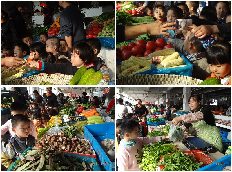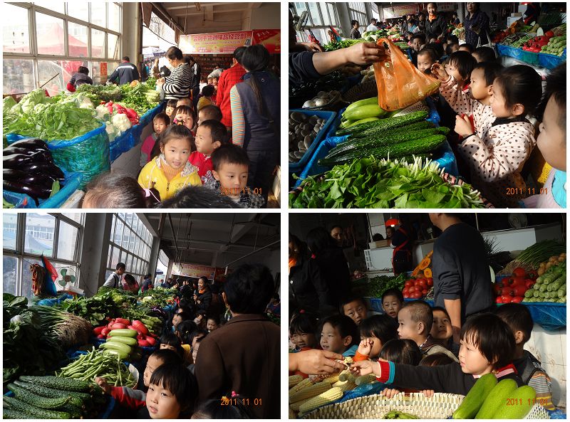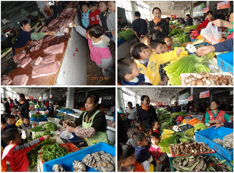 今天好开心哦!第一次去菜场自己买菜!看我们买了好多菜哦!