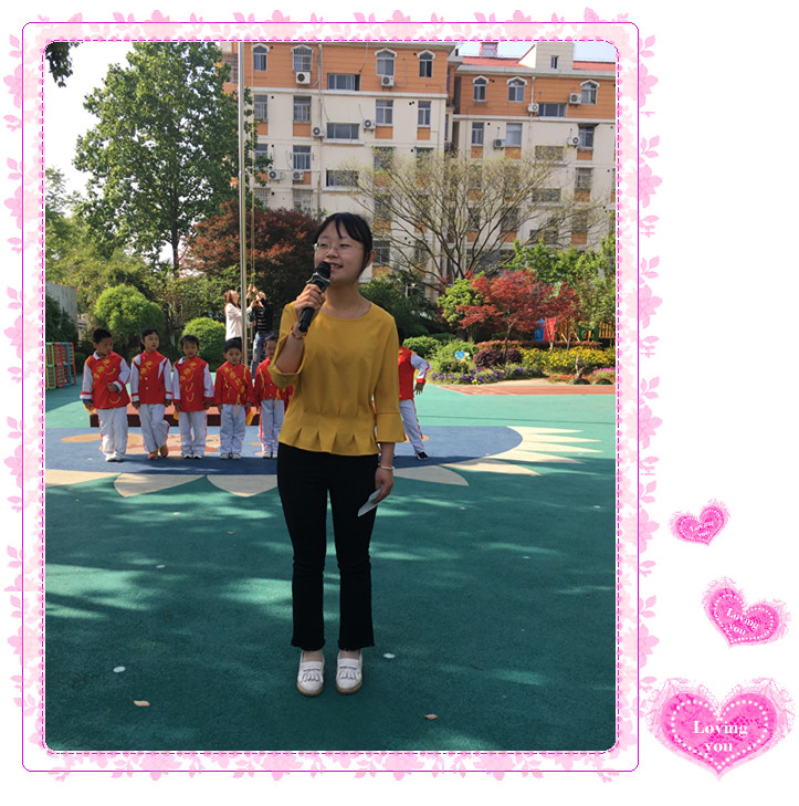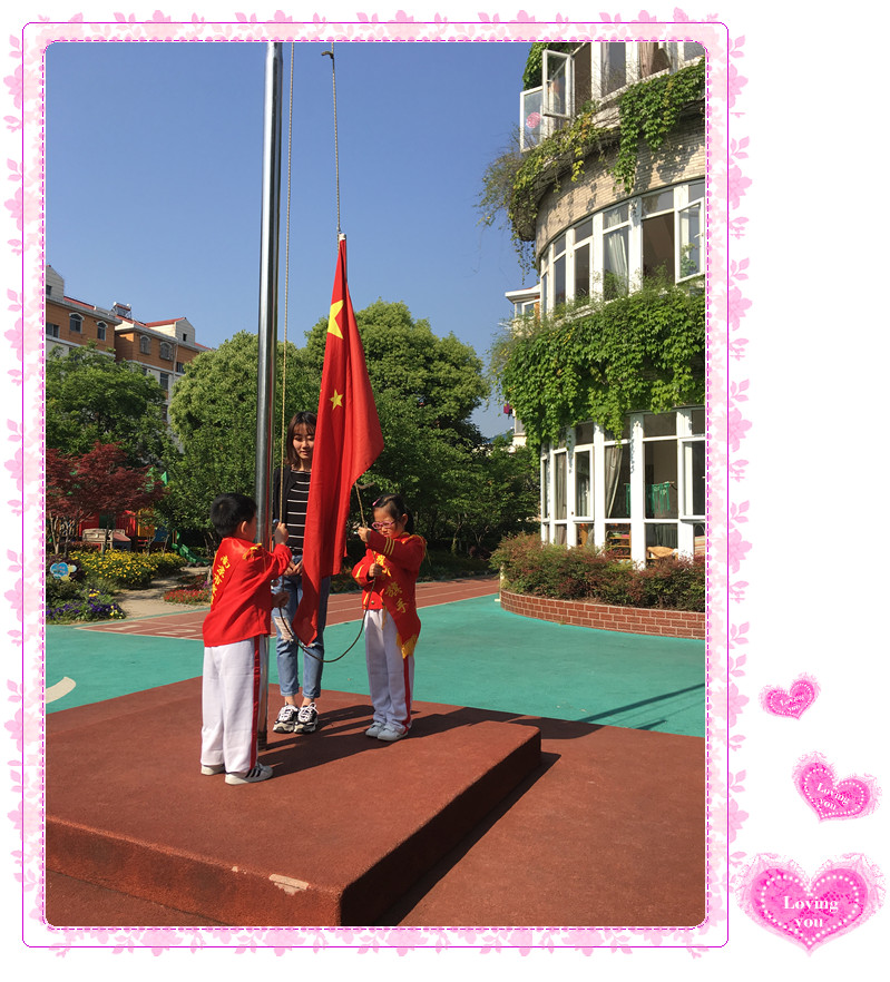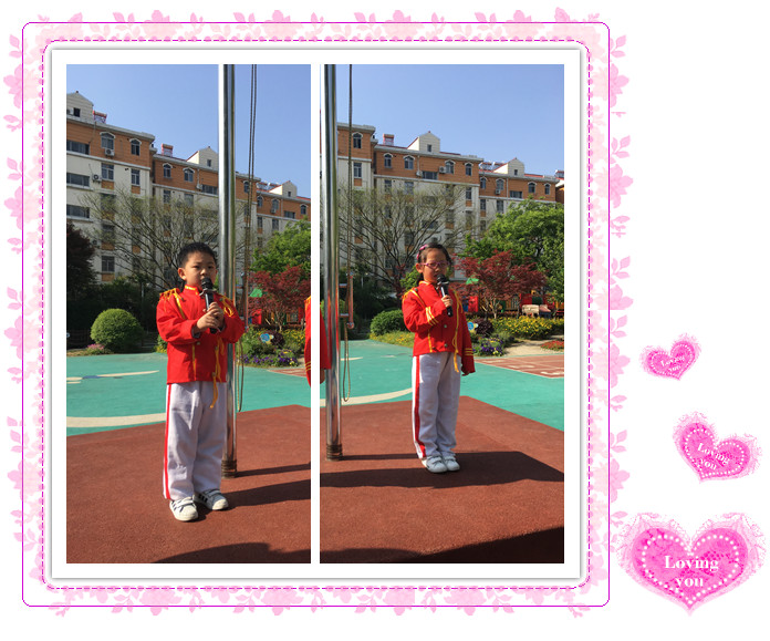 2017年4月24日星期一的早晨,迎来了翠幼第十一周的升旗仪式,全园小朋友在各班老师的带领下,踏着进行曲的节拍,精神抖擞地来到操场,兴奋地等待着升旗仪式的开始。今天的光荣升旗手是大六班的胡靖琪和雷木瑶,瞧,他们正在做自我介绍呢!
