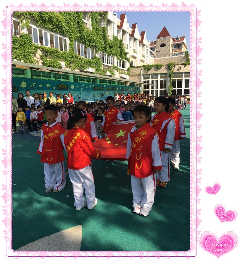 升旗仪式正式开始。伴随着激昂有力的出旗音乐,大六班的六位护旗手们护卫着国旗,步宇轩昂地大步向前走,守卫着美丽的国旗。