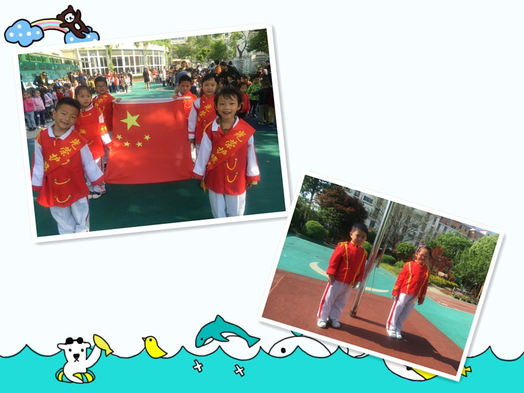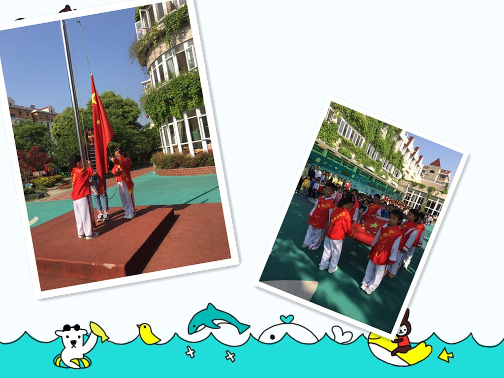 国歌响起,升旗手有节奏地拉着升旗绳,鲜艳的五星红旗徐徐升起,全场的小朋友们、家长、老师们伴随着乐曲唱起国歌,歌声嘹亮,悦耳动听。
