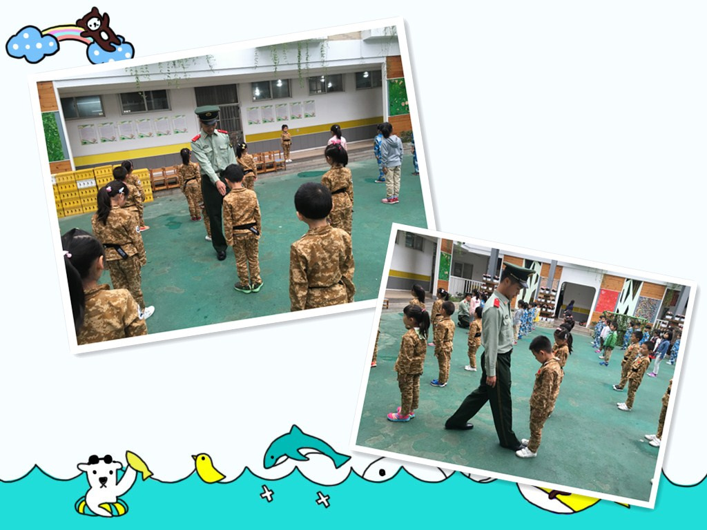 我们知道穿上军服还不是一个正真的小小兵,小小兵要像解放军一样不怕苦,会坚持,能克服困难,这样才能成为真正的小小兵。 一个上午的时间小朋友们进行了军姿练习,训练很辛苦,为了将动作做好、做到位,要反复练习。我们小小兵在训练时要想到自己应该像真正的解放军一样,学会坚持,不怕累,不怕苦,就能克服困难,很好地完成训练。