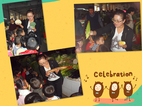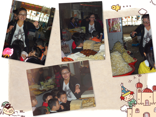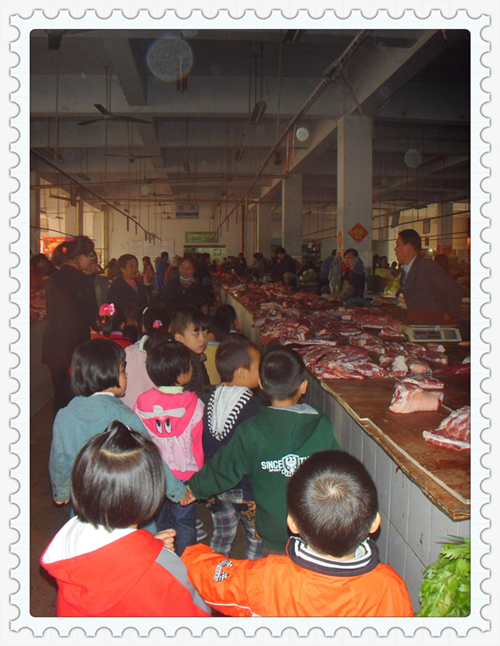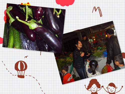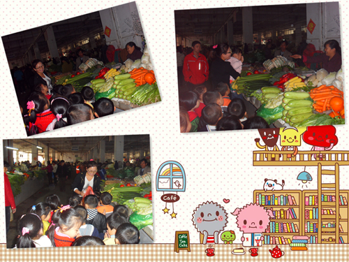 我们自己买菜时间到,看看,我们还是有模有样的嘛!