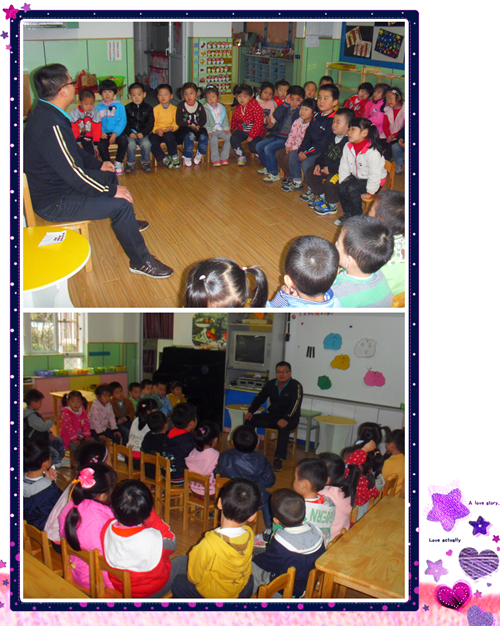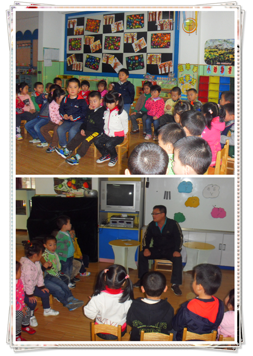 许辰爸爸给我们讲“我们的老师很辛苦”,我们听得很认真呢!