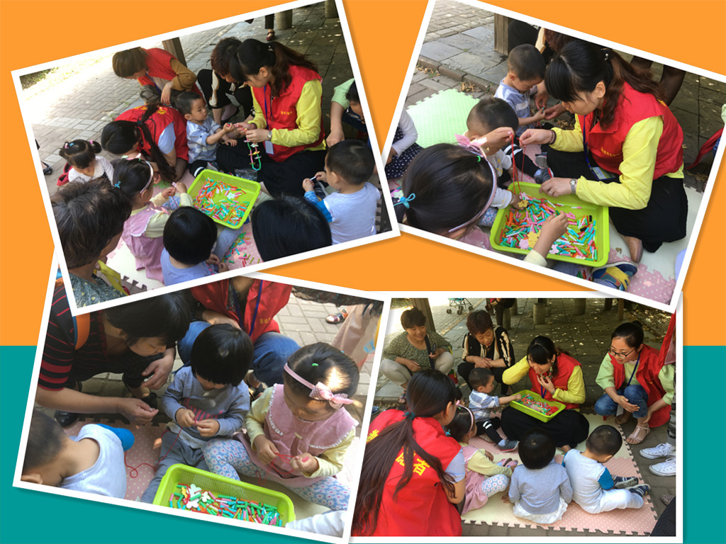 在活动之前,教师志愿者们就以宣传海报的方式,将活动的时间、地点和活动对象等内容张贴在小区中,向大家广而告之。在活动当天,小区的小广场上就来了好多可爱的宝宝。