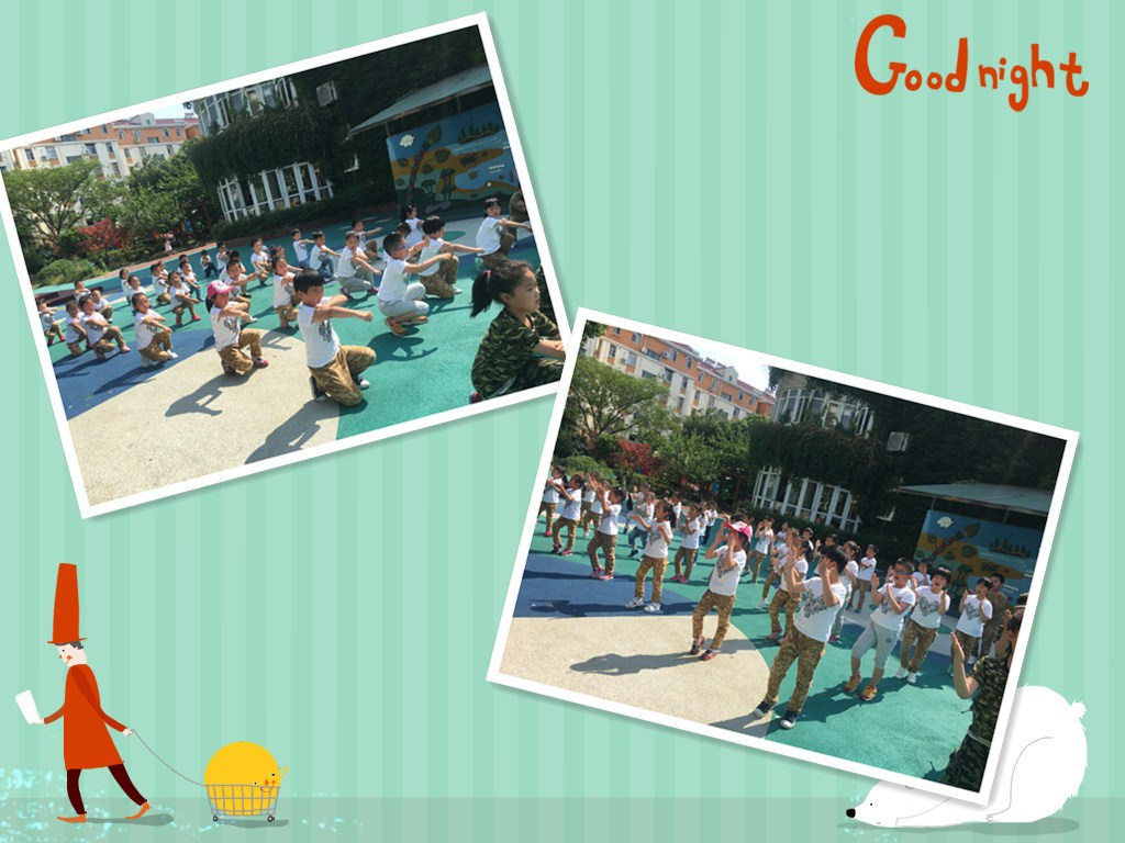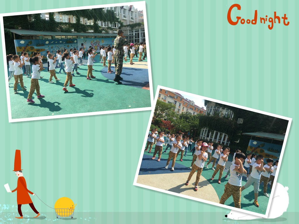 小小兵已经快进入尾声了,我们进行了紧张的彩排,两个星期的军训让我们学会了什么是坚持,这次最后的彩排教官和我们一起彩排,看我们和教官一起打格斗拳。