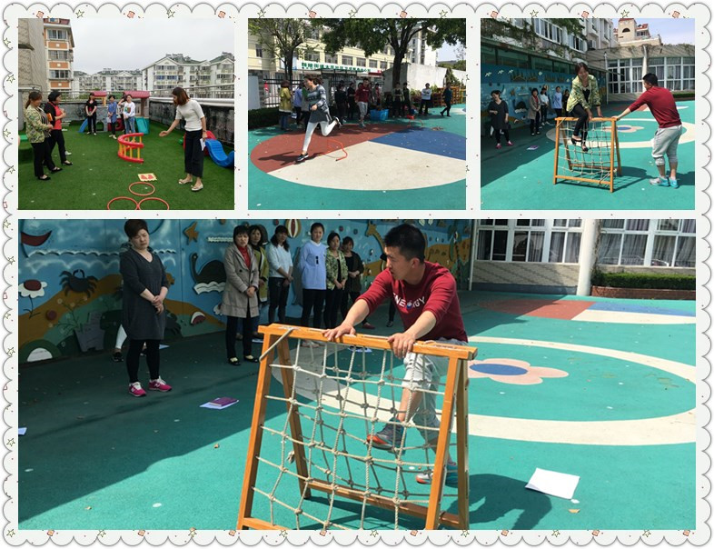 首先,我们邀请了园体育组组长齐峰老师给保育人员进行了培训,内容包括一些基本动作的要领、孩子各年龄段的动作发展特点、晨锻器械的使用等方面,动过演示、讲解,加上亲身体验,让保育人员对孩子的动作发展有了更深入的了解,对一些基本的动作规范及注意事项,如助跑跨跳、抛接球、爬绳网等动作还进行了现场的考核测试。