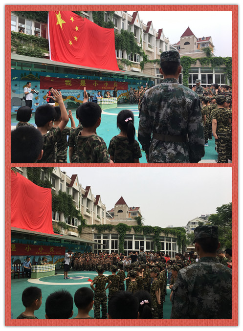 2017年6月1日,大班年级组开展了“我是小小兵”六一汇演活动。活动在铿锵有力的进行曲中拉开帷幕,小兵们和老兵们在教官的带领下迈着整齐的步伐进入大操场,“同志们好”、“首长好”、“同志们辛苦了”、“为人民服务”,响亮的口号声响彻天空。