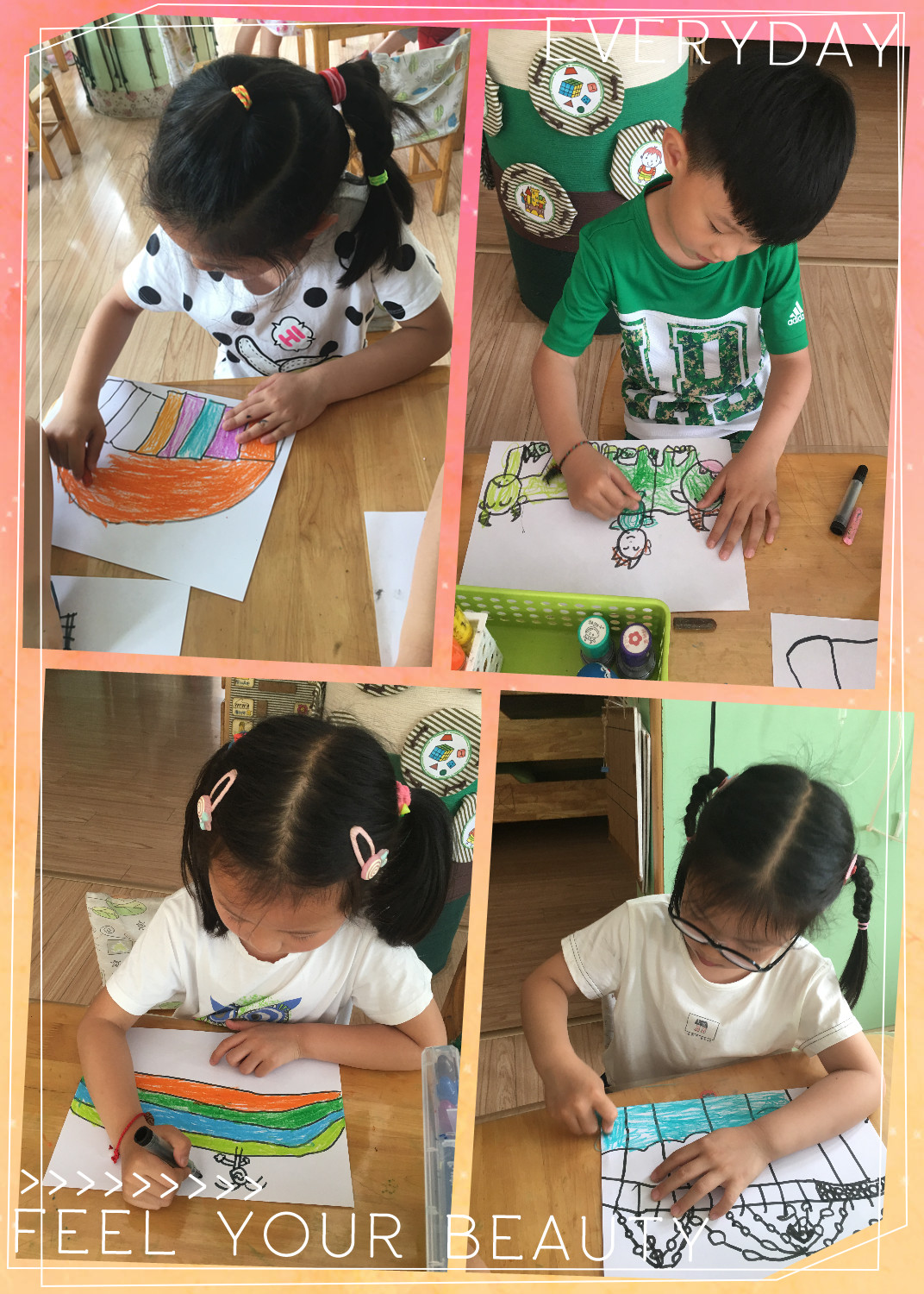 今天我们来设计未来的桥啦,小伙伴们画的桥各式各样的,可有趣了,都是我们从来没见过的桥呢。鲜花、水牛、水果、毛毛虫、瓶子等等东西都可以用来创造桥,看我们在设计的时候多认真呀!