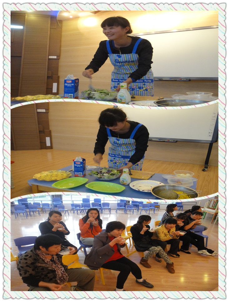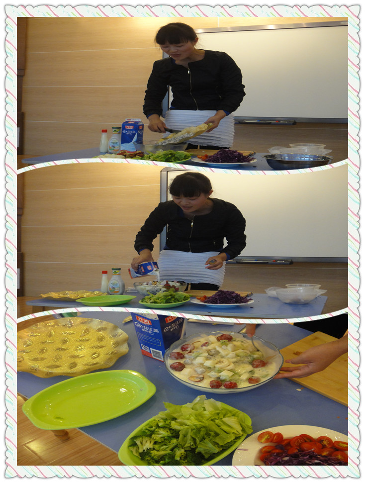 现在做的是蔬菜沙拉,大家看的好认真啊!