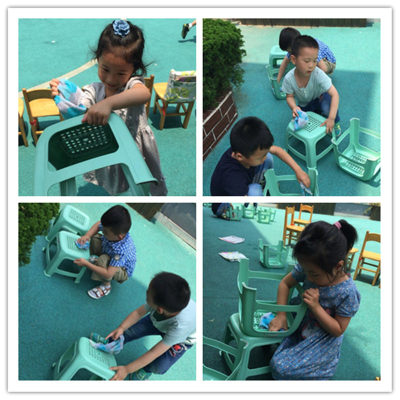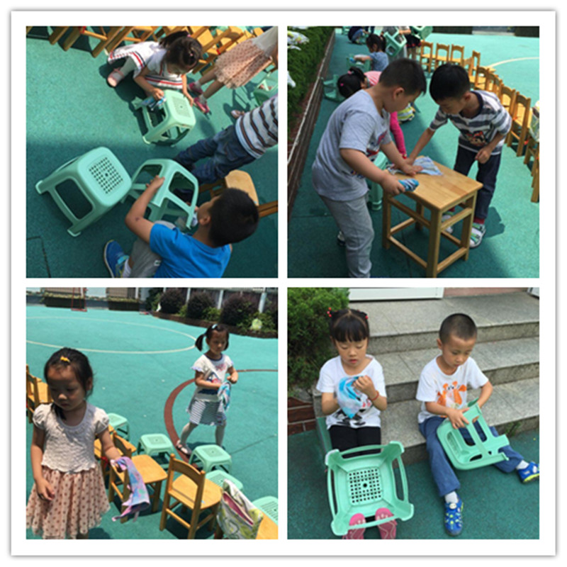 中二班的小朋友们在大好的天气里,自己动手擦拭自己的桌椅,做一个勤劳的小蜜蜂。“凡是孩子自己能做的事,让他自己去做。”这不仅对培养孩子的独立性、自理能力很重要,同时也培养了孩子的责任感,使孩子能对自己的生活、行为负责。 孩子照料自己的生活、保持环境整洁卫生的劳动。教孩子学会自己的事情自己做,不仅能培养幼儿的独立性,还能培养幼儿爱劳动的品质。