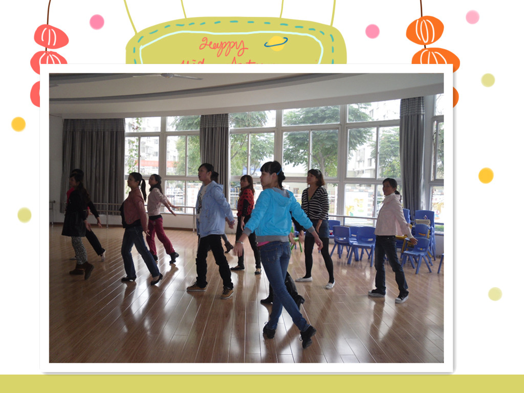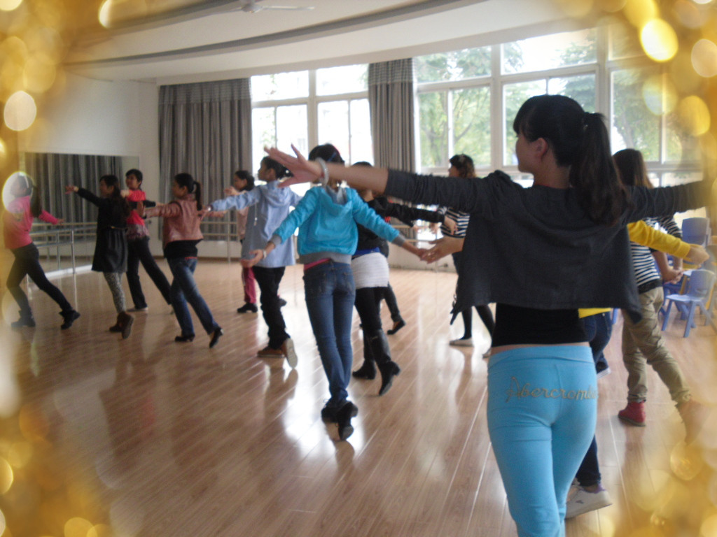 舞蹈社团活动中,教师们在认真的进行着形体训练!