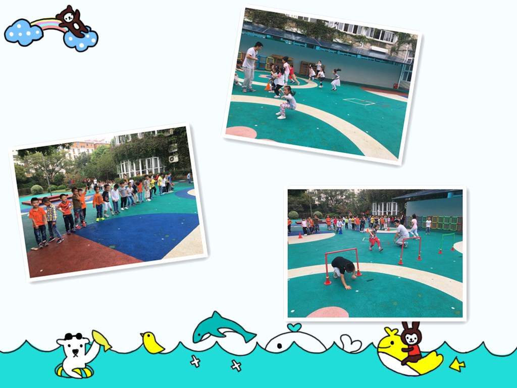第一次跟着齐老师上体育课,小朋友们显得格外的兴奋。立正,报臂,口号喊的精神又响亮。障碍跑,钻爬,跨栏哨声一响就像箭似的飞奔。团体接力跑也没有因为谁的小失误而责怪谁。最后还玩了找朋友的小游戏,可开心了。齐老师对我们大三班的孩子们也是称赞有加!孩子们,开心的玩耍吧。