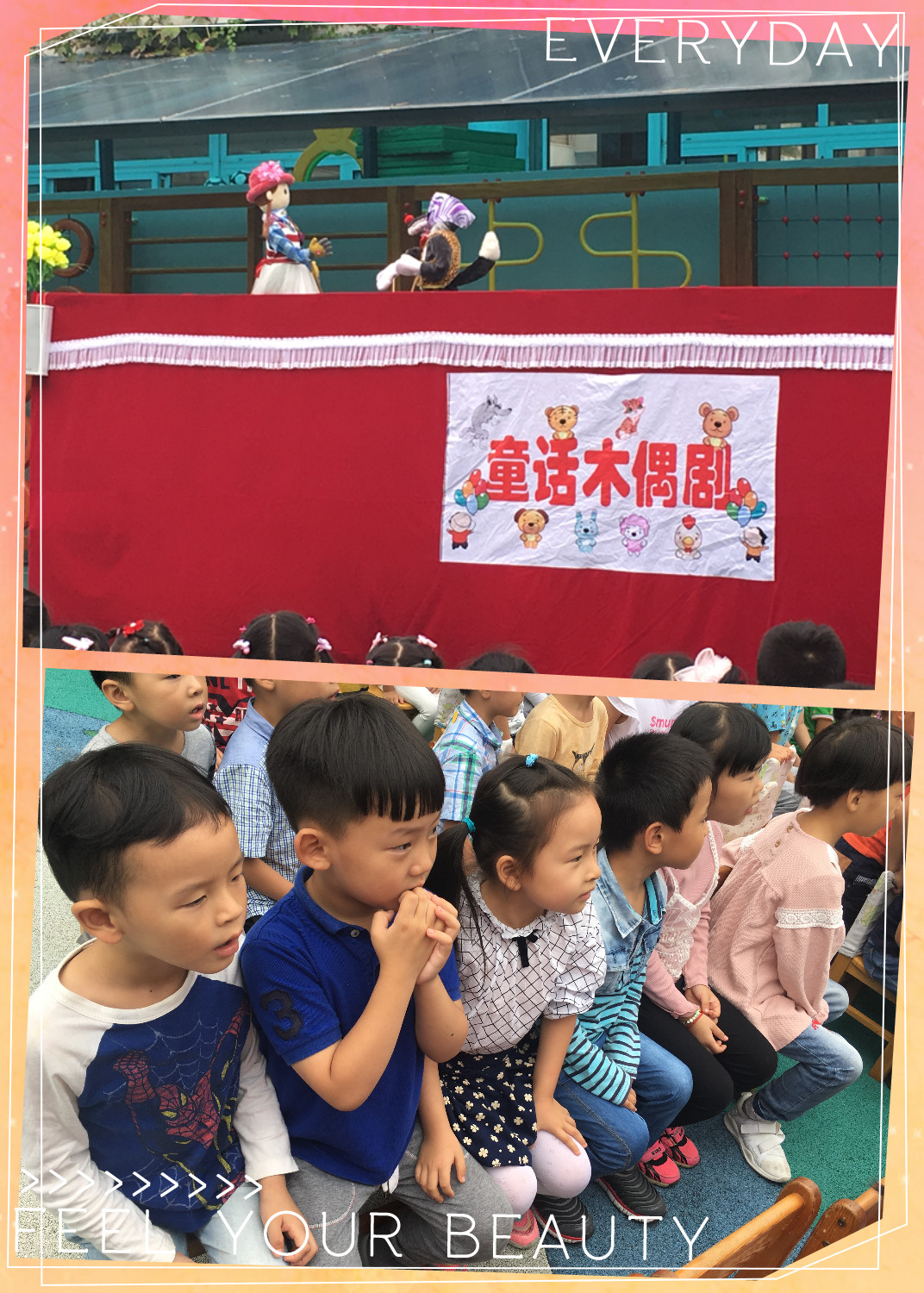 木偶戏剧团给我们带来了许多好看的剧:《小红帽》、《雪孩子》、《拔萝卜》和《老狼请客》,木偶剧真是太神奇了,看我们多聚精会神呀!