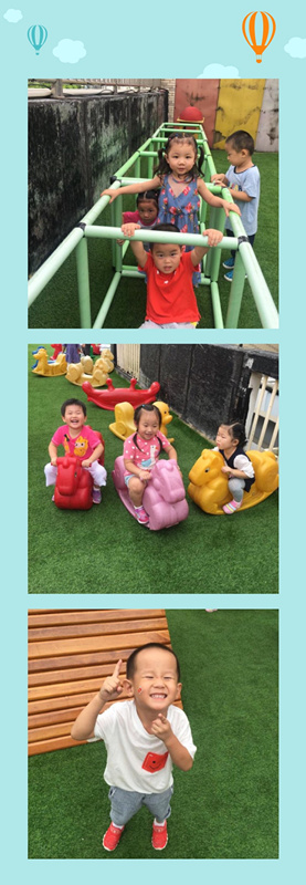 快乐的游戏时光 今天,老师带着我们来到三楼阳台的游戏区。我们骑摇摇马、钻山洞、爬梯子......每次午餐之后,我们都会搬着小椅子做到坐到教室外面的走廊上,和小朋友一起看看书、玩玩手指游戏,和小朋友们在一起玩游戏的快乐。