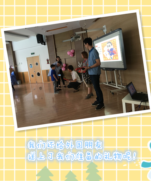 外国朋友给孩子们带来不一样的体验,孩子们也为外国友人送上了具有中国特色的礼物,并和外国朋友们一起合影留恋。在这样生动有趣的活动中,孩子们与外国人零距离接触,认识了黑皮肤、白皮肤的外国朋友,真实地感受中国与外国的不同文化,增强了“我是中国娃”的认识。 让我们期待下次更精彩的活动吧!