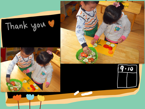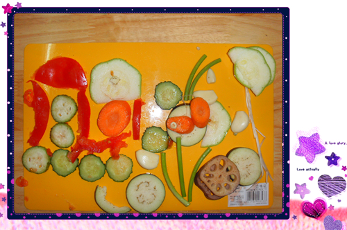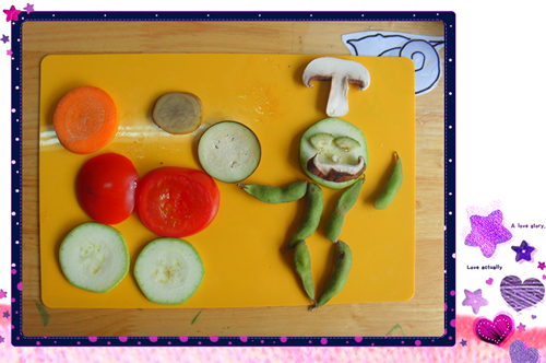 跟好朋友一起合作拼蔬菜拼盘真有意思!