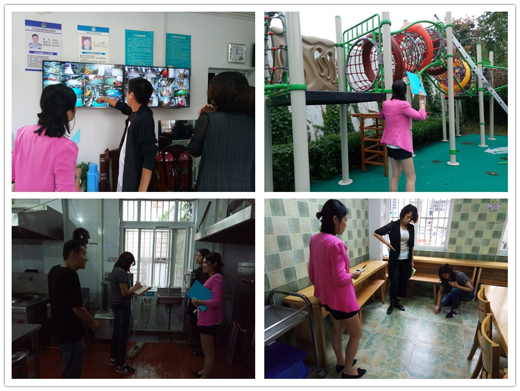 国庆、中秋双节将至,为了确保国庆期间校园安全,给全园师幼营造安全、舒适的生活、工作、学习环境,依据国家颁布的《中小学幼儿园安全防范工作规范(试行)》的指导,9月30日副园长室、安保室、保健室、信息室联手对我园的电子监控系统、烟道改造够后的使用情况、新增的大型玩具、班级用水用电等情况进行全面安全大检查。