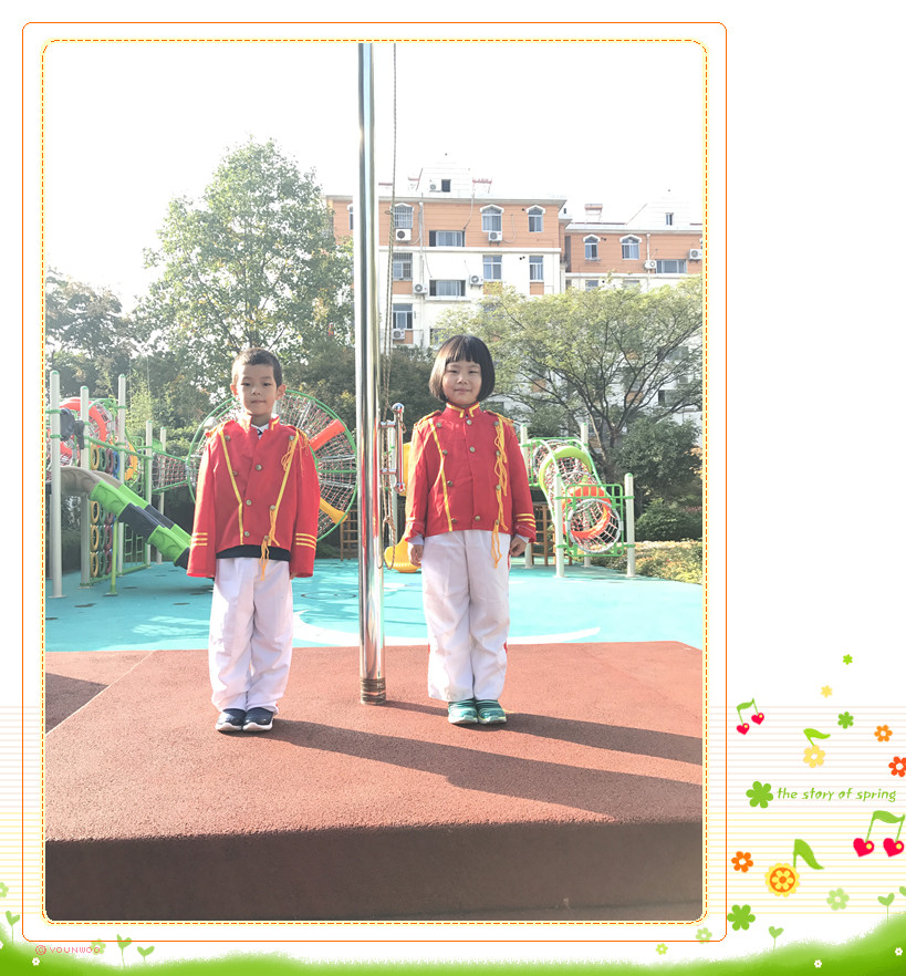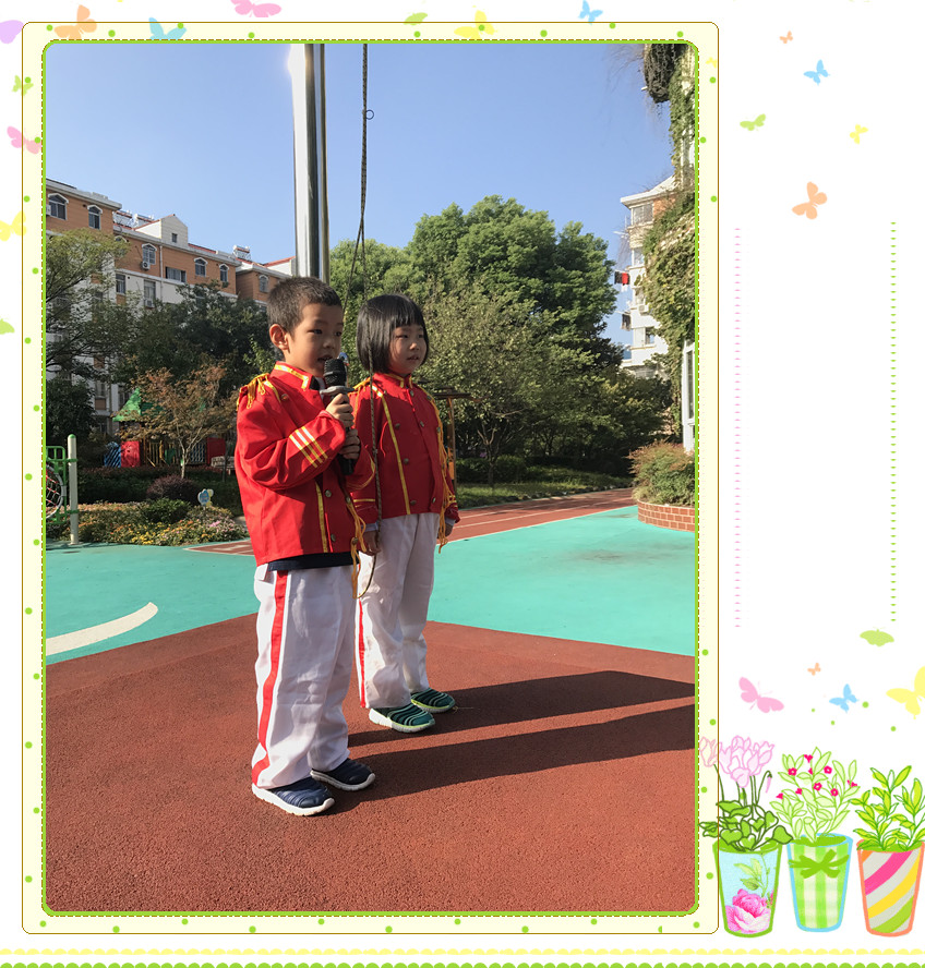 金秋十月,丹桂飘香。在微凉的秋风中翠幼迎来了我们第七周的升旗仪式。朋友在老师们的带领下,伴随着升旗入场音乐,整齐有序地列队在幼儿园的操场上。本周的升旗手是大四班的王奕昕和李咏晏。你看,他们正在做自我介绍,还为我们带来了精彩的绕口令表演。