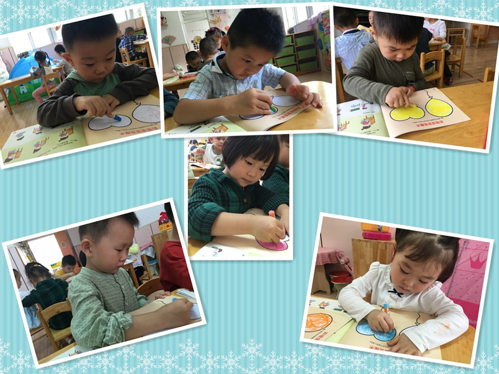 小四班小朋友第一次认识油画棒,接触美术活动。