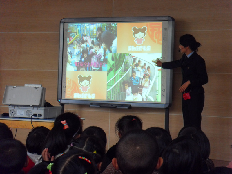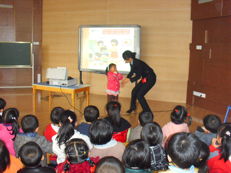 “糖糖”妈妈通过漂亮的喜羊羊课件分别从校园安全、居家安全、户外安全、交通安全、重大灾难五方面,生动的告诉孩子们在幼儿园要注意的安全事项,玩滑滑梯时要排好队,上下楼梯靠右走;在家里,不能给陌生人开门,遇到坏人或危险要拨打110报警电话;在户外,不能在马路上玩耍,过马路看红红绿灯;遇到火灾,要用湿毛巾捂住口鼻迅速撤离,并拨打119火警电话;遇到地震,要躲到坚固的地方,并及时撤离到安全的地方。小朋友们通过观看、表演、现场抢答等形式了解了很多有关安全的常识,最后还得到了“糖糖”妈妈赠送的棒棒糖等很多礼品。