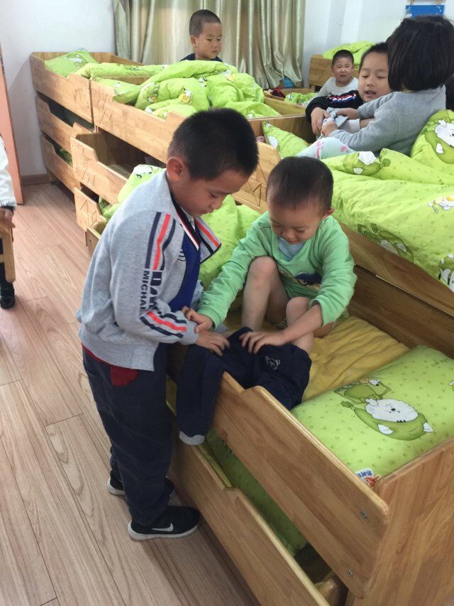我一觉睡醒来到了小班弟弟妹妹的班上,看着弟弟妹妹艰难的穿着衣裤,我赶紧走上前去主动帮弟弟妹妹穿上衣服和裤子,鞋子也不能忘记。我已经是大班的哥哥姐姐了,我能做的事情很多,能帮爷爷奶奶做家务,能帮老师摆晨锻,还能帮弟弟妹妹穿衣服呐!
