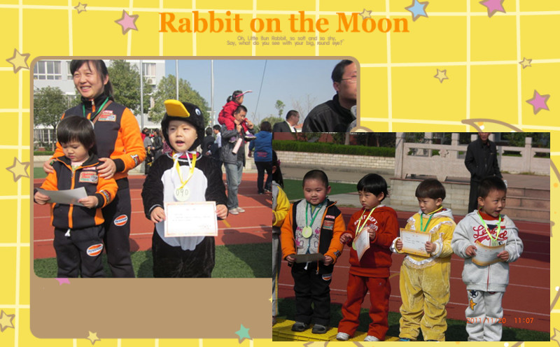 11月我们举行了亲子运动会,在运动会上,每个节目都非常的精彩哦!有爸爸妈妈们、老师们的精彩演出,还有我们啦啦队员们的精彩演出,我们小朋友也有很多节目哦!那天真是开心啊,我们不光看精彩的表演,还在运动会上得了大奖!下面我们一起来回味一下当天的精彩瞬间吧! |