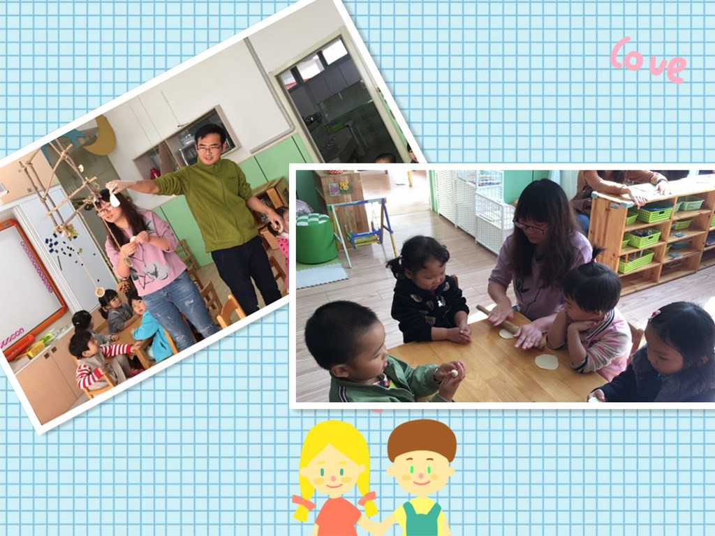 今天我们班来了“新老师”,你猜,他是谁?他们是我们班小朋友的爸爸和妈妈,爸爸和妈妈今天来到幼儿园当小老师。今天我们跟着“新老师”学习了包饺子。我们还认识了新的朋友——面粉和擀面杖。
