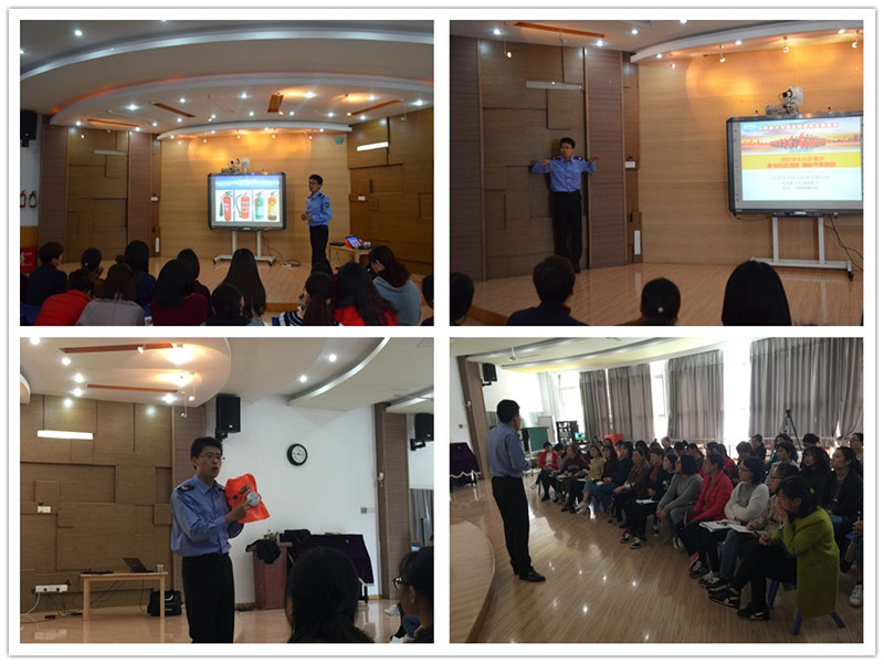 安全工作重如泰山,随着119消防安全宣传日的临近,为了加深幼儿园教职工防火的意识,提升教职工火灾中自救的知识,我园于11月8日邀请区安居消防的吕教官进园为教职工进行消防安全知识讲座。 吕教官向家长们讲述了消防基础知识和防灭火知识,就火灾的危害、如何避免火灾、如何自救逃生及如何使用消防工具等相关知识,利用一系列触目惊心的照片和发生在大家身边的鲜活的案例向大家介绍了火灾的特性,讲述消防安全的重要性和必要性。吕教官还结合火灾事故现场图片,就如何采取科学自救措施等方面给大家上了一堂生动的安全教育课——万一发生火灾大家以先自救为主,随着社会的不断发展,影响消防救护的因素越来越多——堵车、楼层过高,云梯只能伸至13层、楼间距过窄,云梯工作的展台需要六米宽、楼层低的住户安装防盗门、防盗窗等等,所以大家在发生火灾时第一时间学会自救为自己争取宝贵的几分钟。