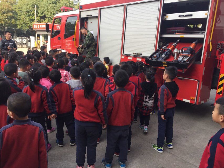 今天阳光真正好,我们手拉着手,迈着轻快的步伐跟着老师来到了消防局。消防员叔叔真是英姿飒爽啊,不仅带我们参观了内务,还带我们了解了消防车,有点可惜的是没看到高高的云梯。不过没关系,我们今天见识到了消防员叔叔厉害的本领,悄悄告诉你:消防员叔叔们每天起床都是从长长的杆子上滑下来的呐。