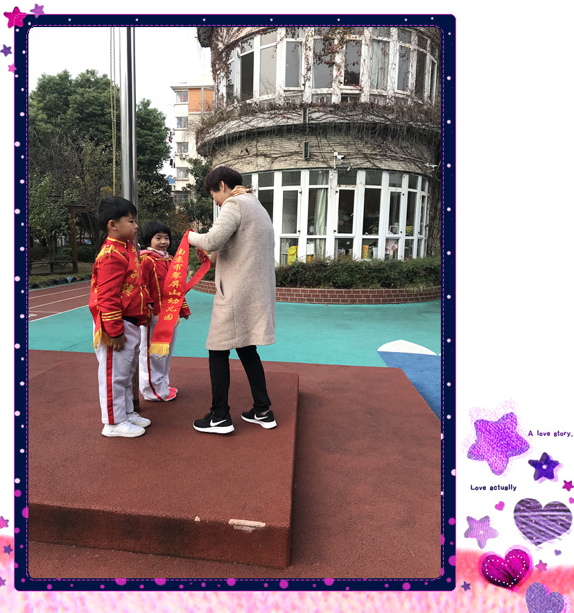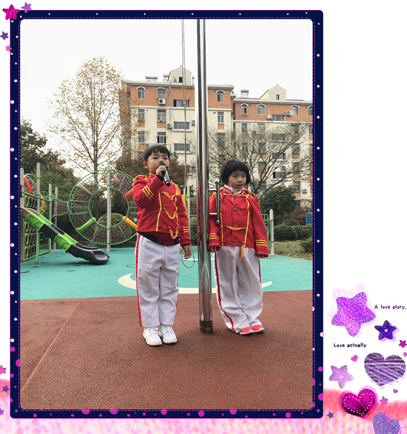 当人们还沉浸在那秋天的夕阳之中,初冬已悄然来到。撩开季节更迭的幕布,初冬已经走过春、夏、秋,却变成了一帧帧凝固着的风景画卷,以庄严肃穆的姿态,缓缓地走进了人们的视野。翠幼的升旗仪式在凉凉的微风中,正式开始。
