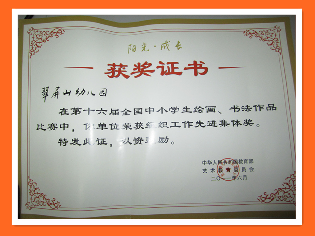 近日我园有50件作品在全国第十六届中小学绘画、书法比赛中获奖,其中获得一等奖奖作品2幅,二等奖作品10幅,三等奖作品38 幅。同时幼儿园荣获组织单位先进集体奖。此次获奖作品展示了孩子们不凡的画艺和灵智,充分彰显了我园美术教育的办学特色。