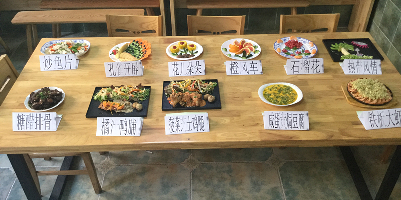 为了进一步加强炊事人员队伍建设,倡导饮食文化,提高炊事员的业务技能,更好地为师生服务。此次活动我们将炊事人员分为两组,一组是大厨,要求大厨在规定时间内,进行“拿手菜”创新切配烹饪,菜肴烹饪的量大概在一盘,自己切配、烹饪,装盘。另一组为配厨,要求配厨做一个食物拼盘。