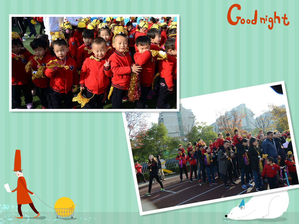 接下来就是运动员入场了,我们班的吉祥物是小老虎,我们头戴着老虎头饰,精神饱满的入场了,我们大声地喊着我们班的口号:“小二班的娃娃,小二班的花,小二班的娃娃顶呱呱”你觉得我们棒不棒!