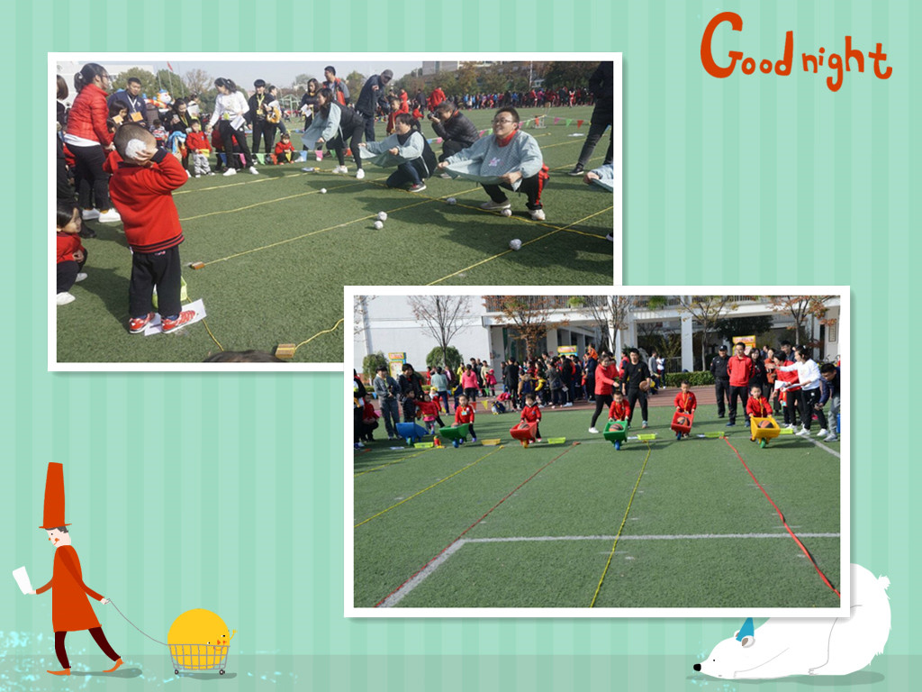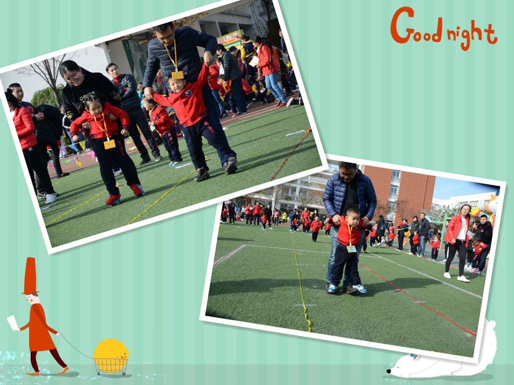 参加完入场式我们就要开始我们的运动项目了。每个小朋友参加的运动项目都不一样奥,有的参加兜兜球,有的参加大脚踩小脚,有的参加小推车,我们和爸爸妈妈一起合作,我们玩的很开心!