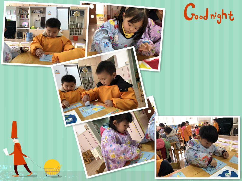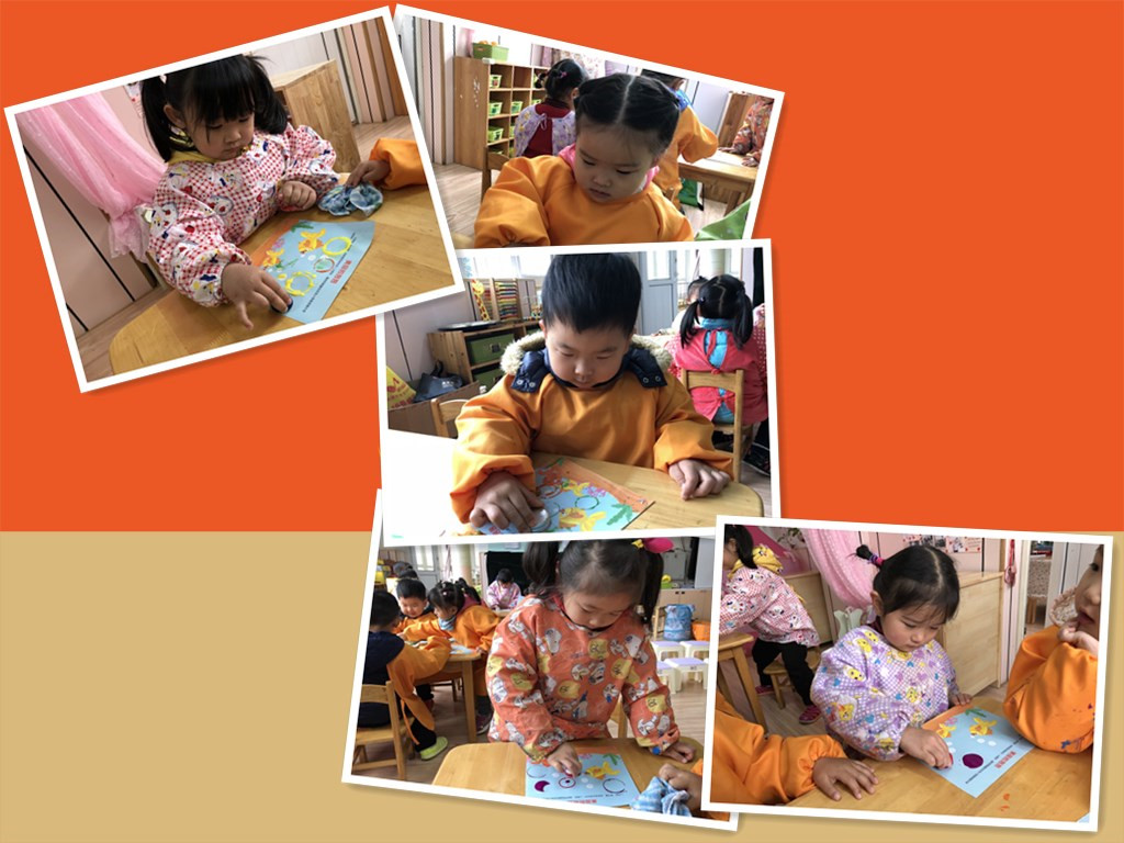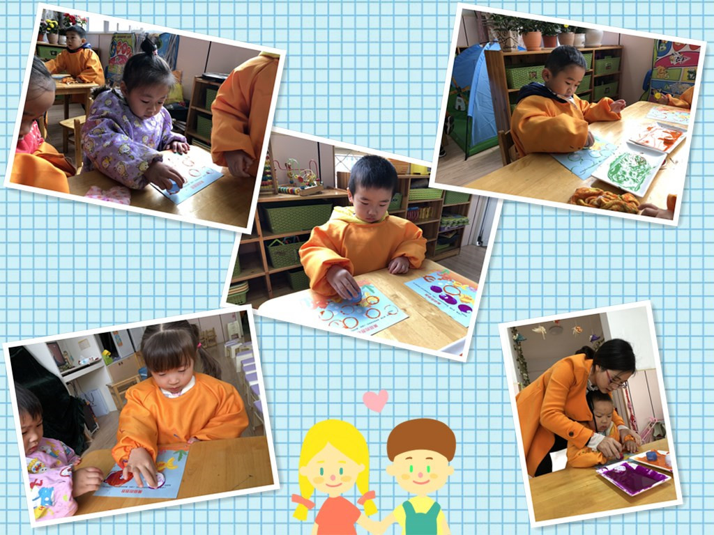 通过有趣的印章印画形式创造了自由、轻松的活动情境。印章印画正符合了趣味性的特点,此次活动发掘孩子乐于创新的精神,让孩子在简单的学画中,锻炼手指小肌肉、发展创造性。幼儿在动中体验,在玩中发展,充分体现了小班美术活动游戏化的特点。