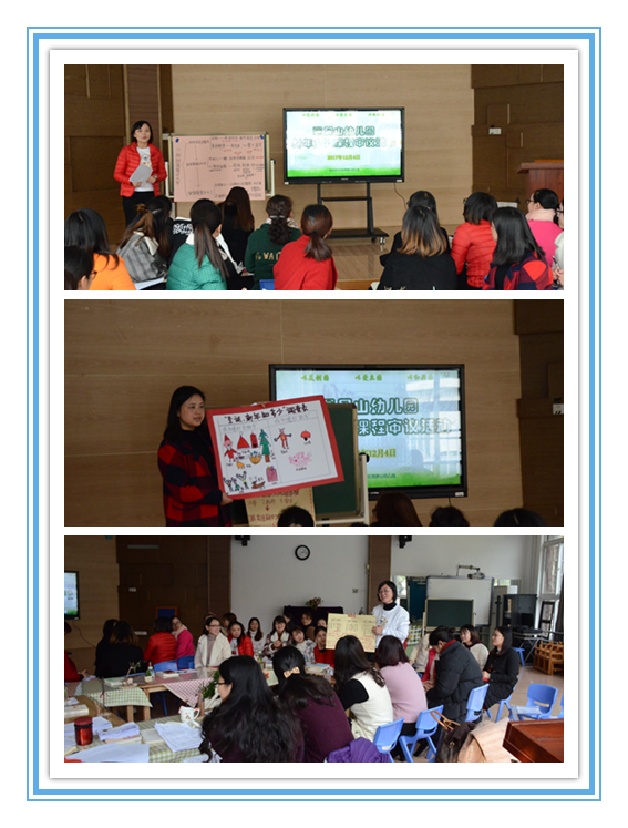 审议中,小中大三位年级组长分别从“主题的由来与产生、幼儿的经验与分析、线索的设置与调整”等方面详细介绍了“甜甜蜜蜜过大年、红红火火年来啦、喜气洋洋庆新年”三个年龄层次的不同主题。