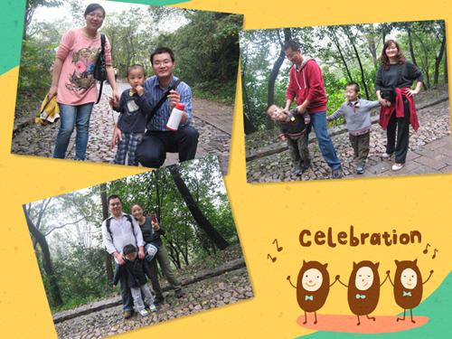 爸爸妈妈和我一起比赛爬山,看谁得第一!
