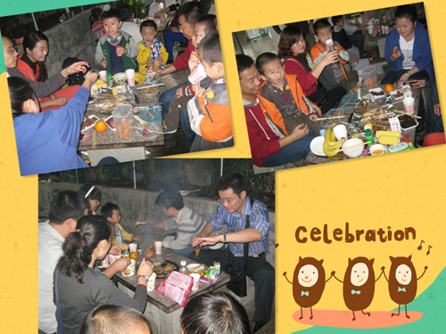 午饭时间是有趣的烧烤活动哦!看那个烟雾缭绕啊!