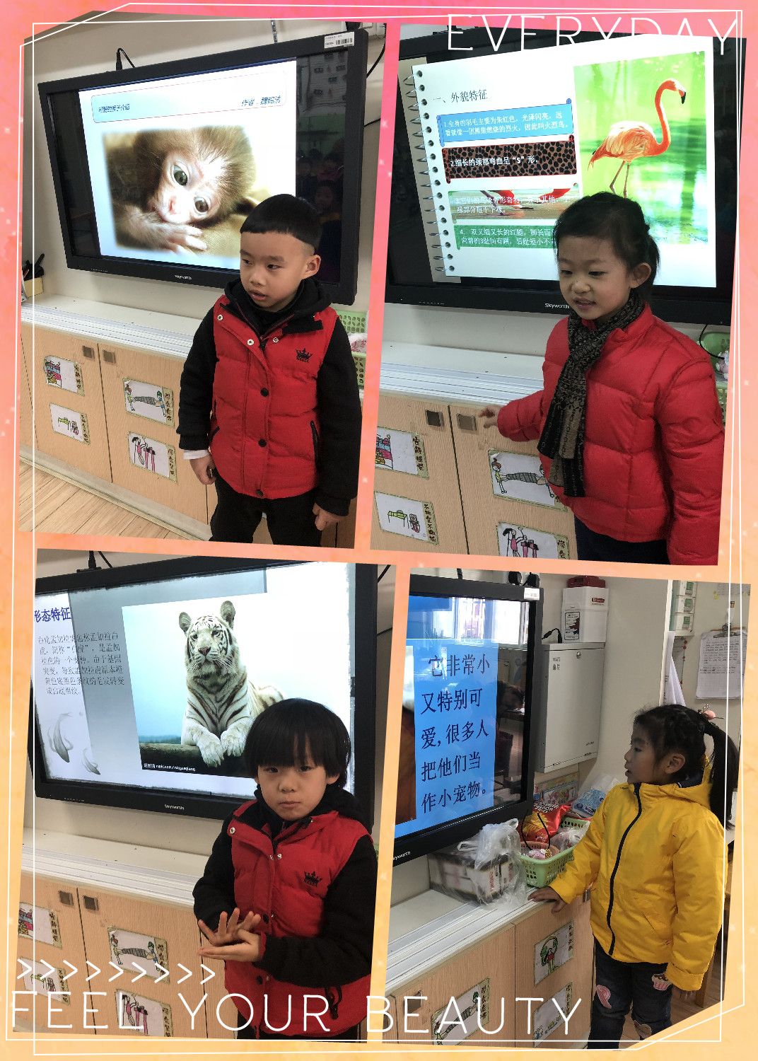 不仅如此,孩子们还回家和爸爸妈妈共同制作了“我最喜欢的动物”PPT,带来班级向班级小朋友介绍自己喜欢的动物的外形特征、生活习惯等等。让我们一起来看一看吧!