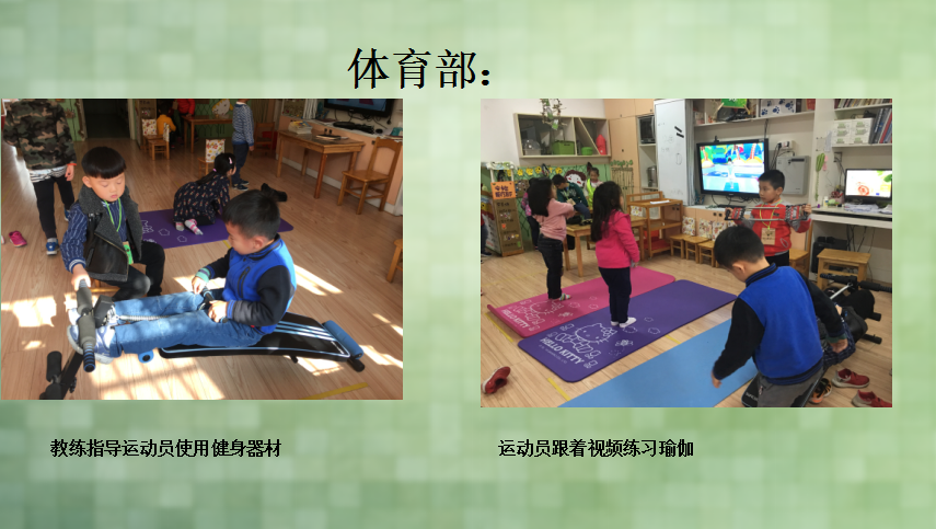 经过这个主题的学习,我们也进行了一些系列的反思。.首先每个工作部的游戏材料不够丰富,半成品、可替代品较少。每个工作部之间的游戏内容应当更加科学化的统筹规划。工作部之间的交流不够。幼儿在工作过程中会忘记自己去喝水如厕,需要老师的提醒。幼儿的游戏水平有待提高,如“新闻宣传部”的小记者在采访运动员的过程中语言丰富。期待我们在实践中越来越好!