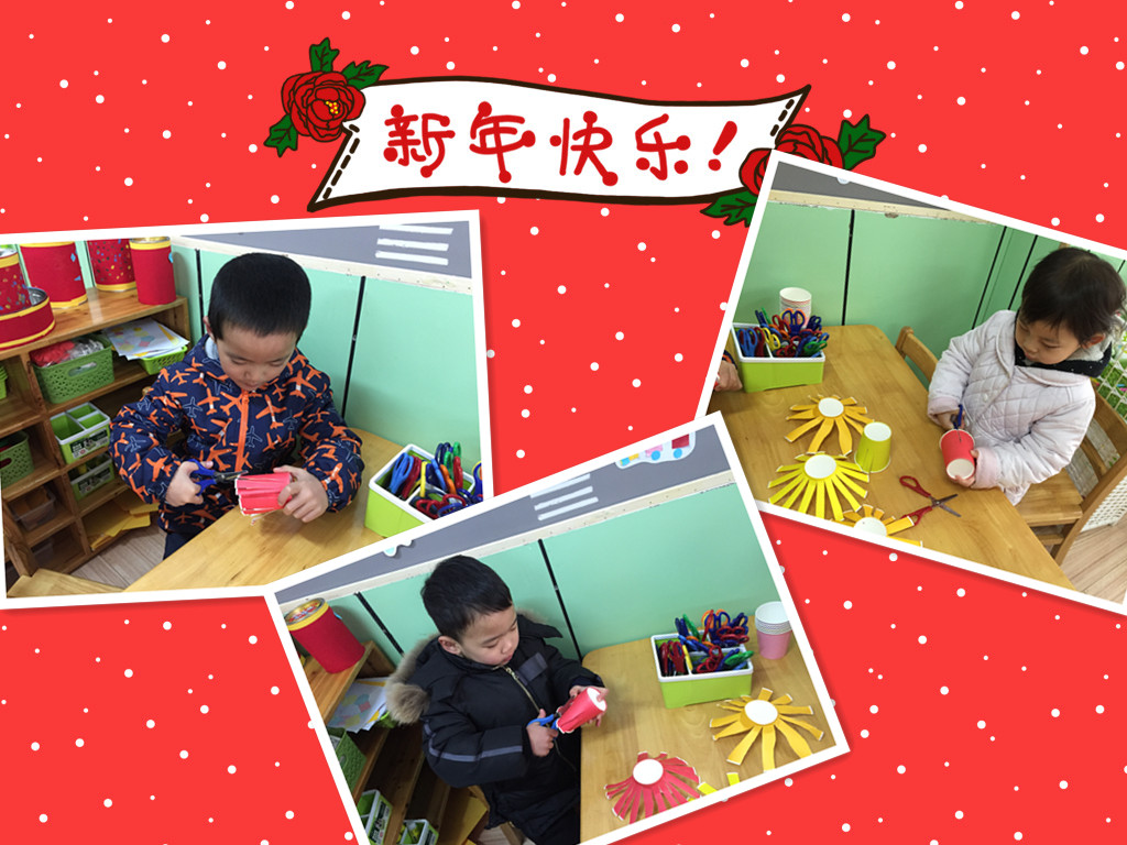 新年,我们除了会放鞭炮,还可以放美丽的烟花,烟花有各种颜色,是我们用小剪刀剪成的哦!